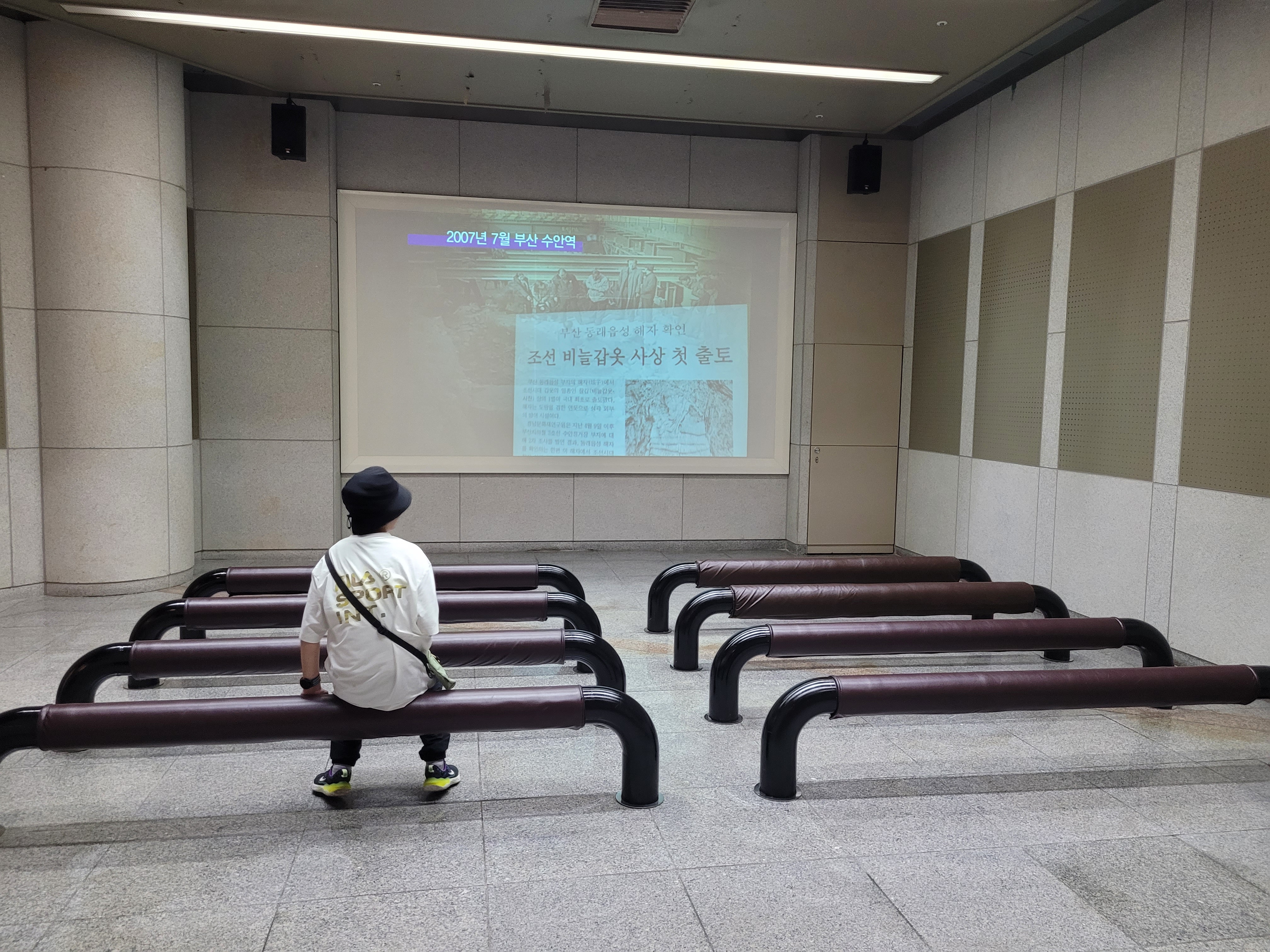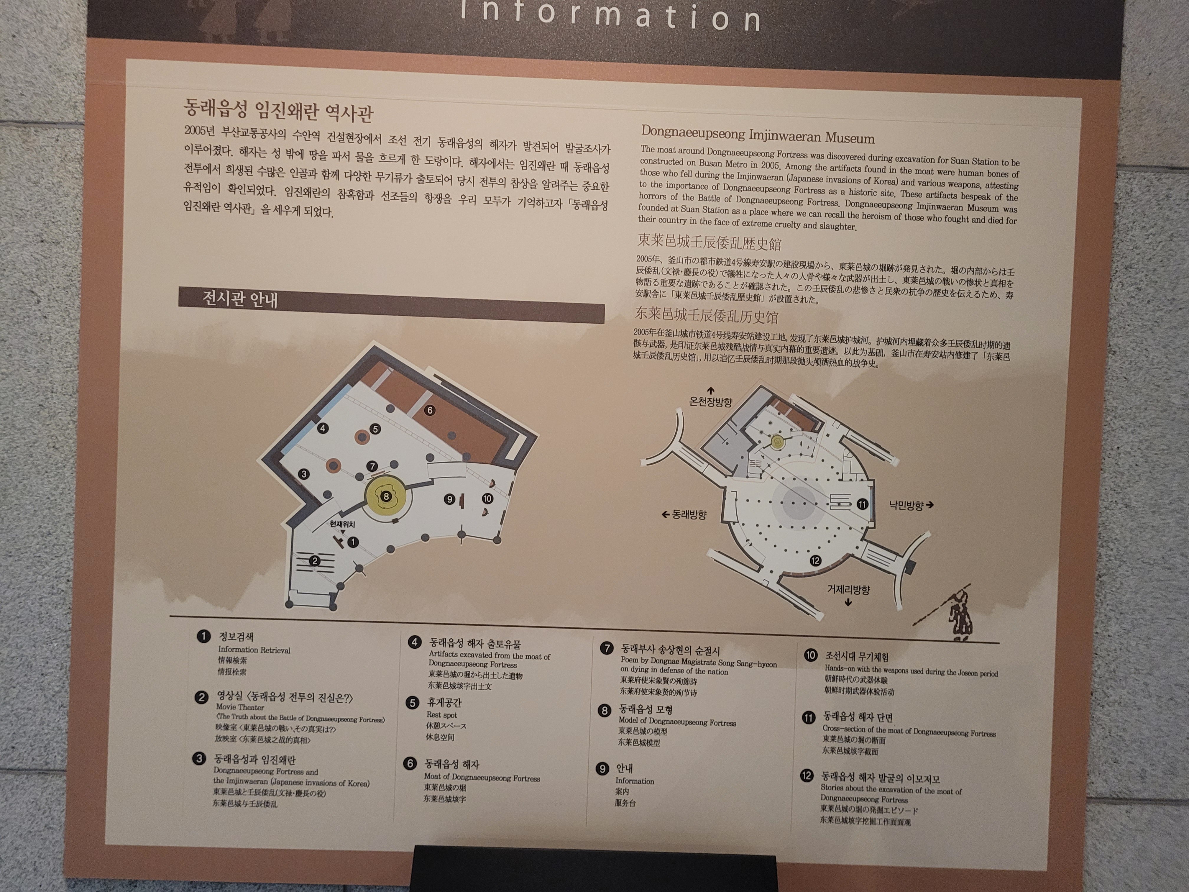 2007년 7월 지하철 수안역 공사를 하고 있을 때 발굴이 시작되었고, 동래읍성 전투의 진실에 대하여서도 자세하게 설명하여 주고, 조선 비늘갑옷 출토까지 영상을 통해 알게 되었다. 얼마나 지났을까? 영상실 소용시간은 잘 모르겠으나 피곤한 다리도 풀어주고 역사도 배우고 참 좋은 시간이었다.