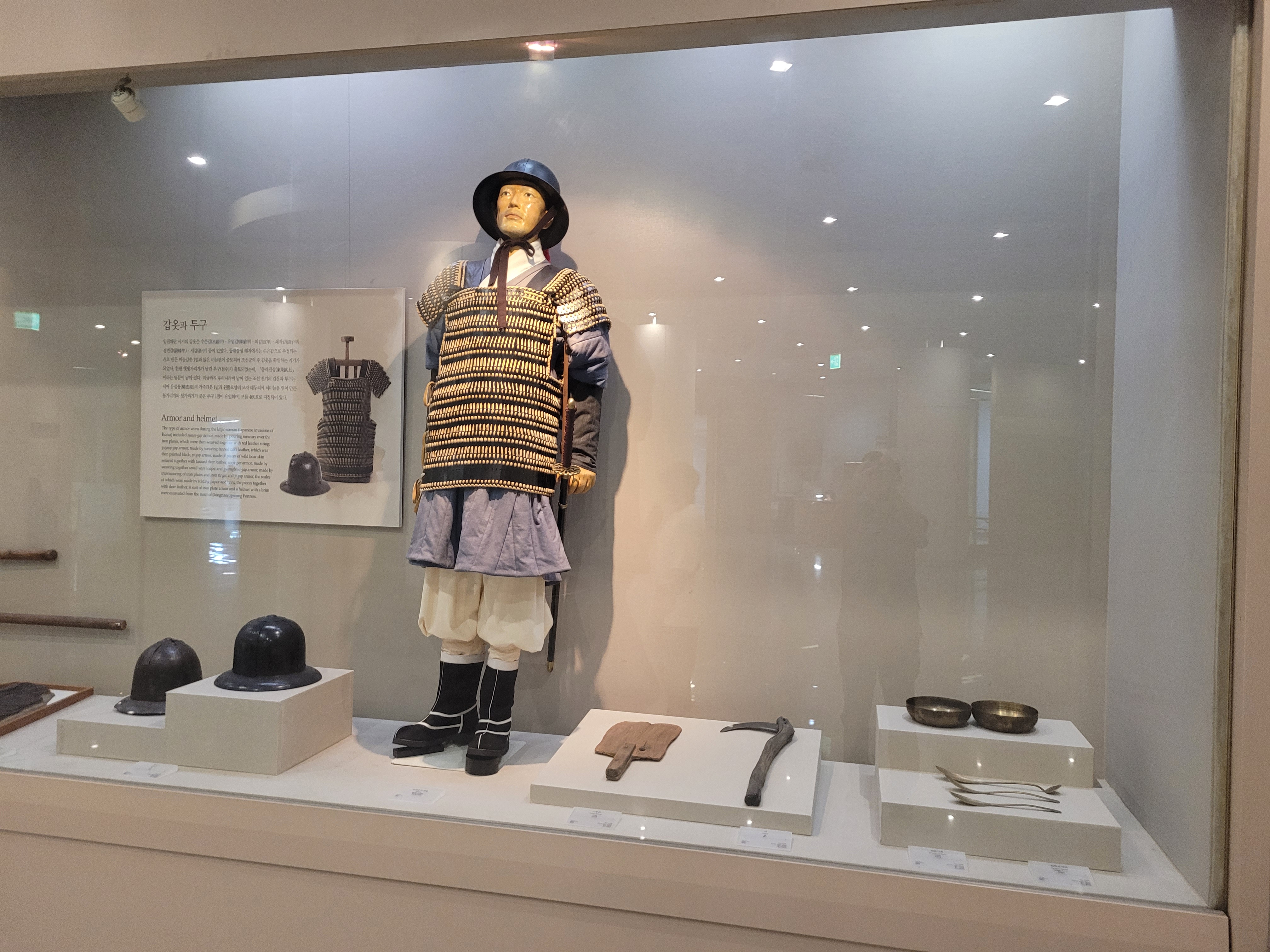 아이고 우리 키 높이의 칼리 전시 되어있습니다. 우리 선조님이 들고 다녔든 칼이겠죠? 왜놈은 이 칼만 봐도 도망을 쳤을 것 같습니다. 임진왜란 때의 각종 무기류와 갑옷 등을 관람한 우리들은 다시금 다른 장소로 이동을 하였습니다.