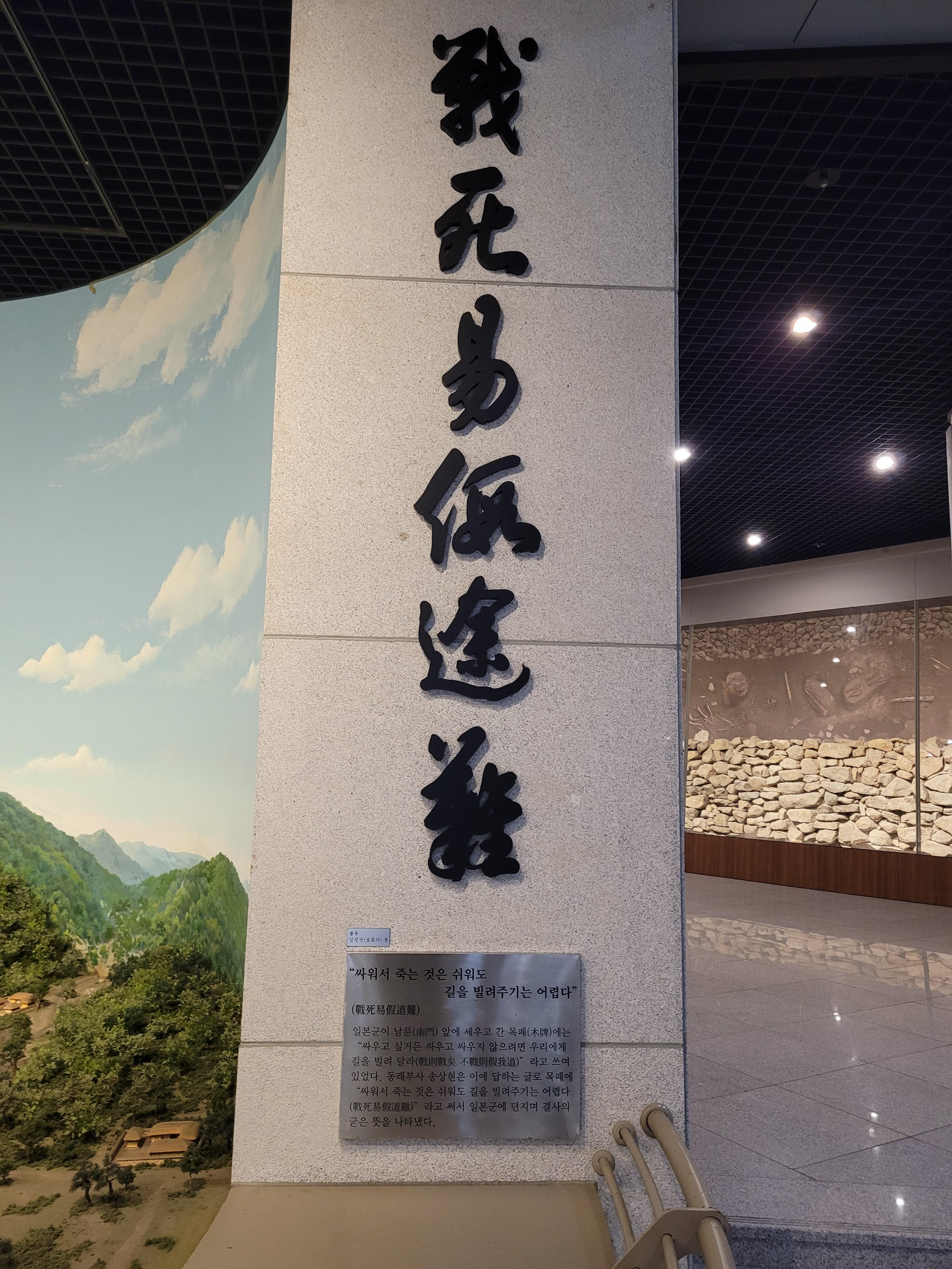 모형도 좌우에 있는 글을 마음속 깊이 넣어서 말이다. 당시 왜놈이 "싸우고 싶거든 싸우고 그렇지 않으면 우리에게 길을 빌려 달라"라는 목패를 세우고 갔으나 우리들 선조 송상현은 "싸워서 죽는 것은 쉬워도 길을 빌려주기는 어렵다"라며 결사의 굳은 뜻을