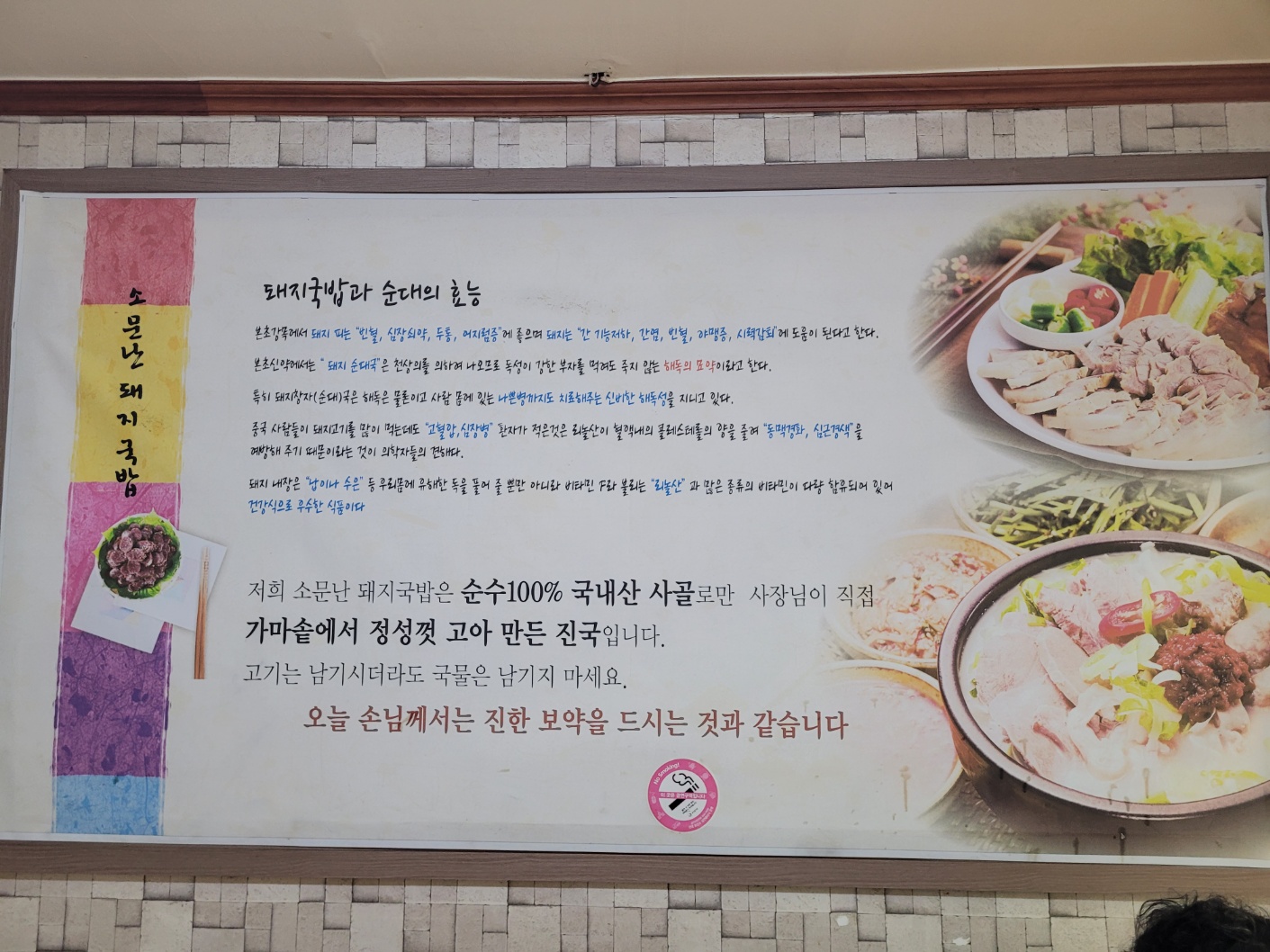 돼지국밥과 순대의 효능을 현수막을 통해 우리들에게 아려주시는 사장님 ㅎㅎ